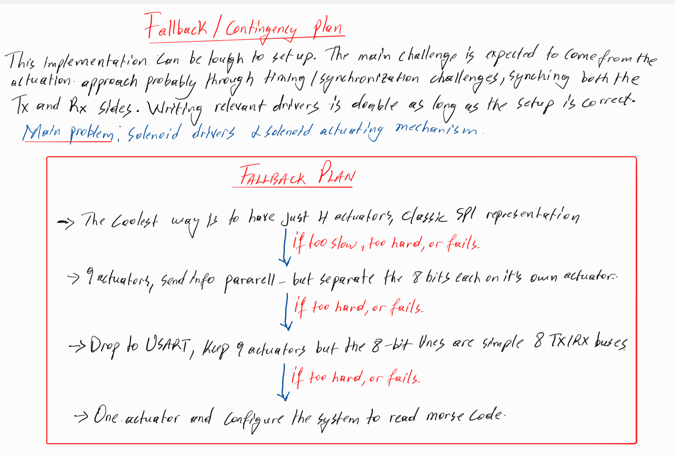 The team has a fall-back plan in case new errors and challenges come up along the way to ensure that at least the main idea of transfering encrypted data mechanically still stands.