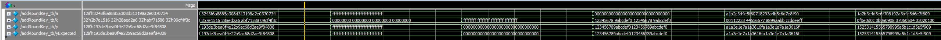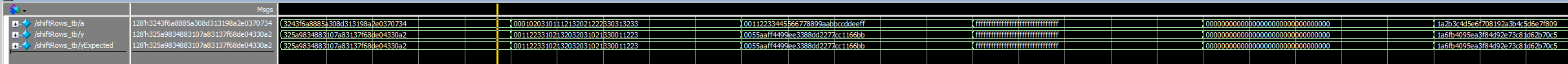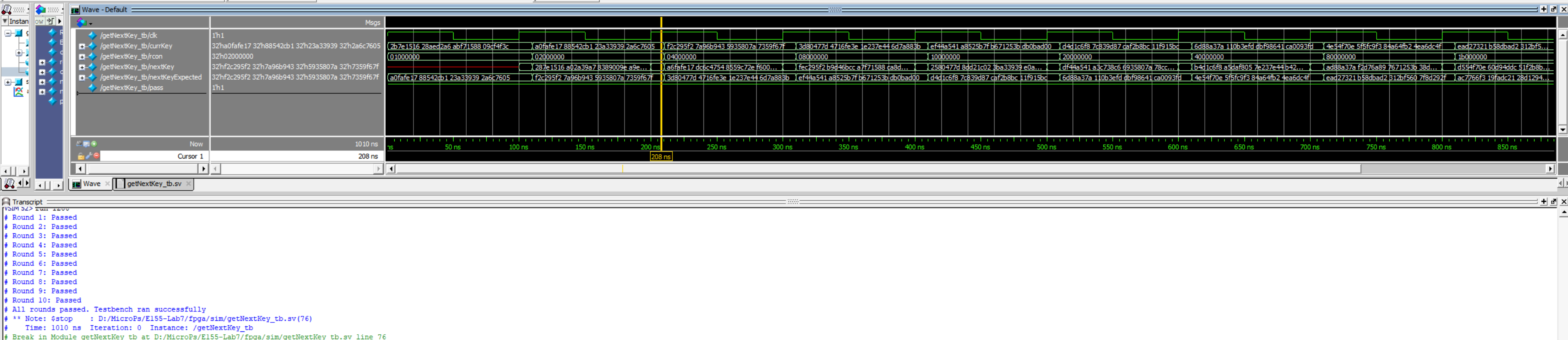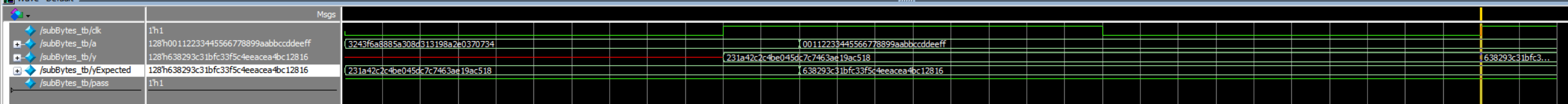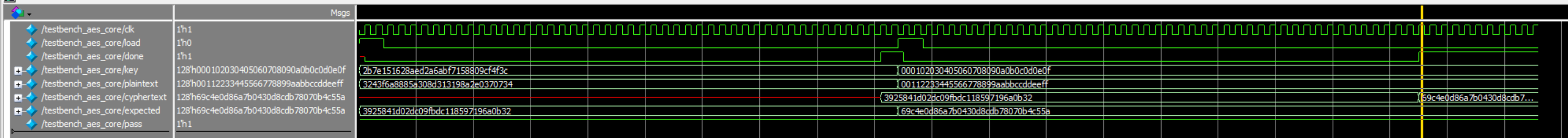 The testbenches were extremely helpful, especially for this particular lab. I was able to track how my key and other signals move around as I’m performing the key expansion. It allowed me to see how each data signal is loaded as well as when it is updated and it was how I realized the subBytes() issue. They were also essential in testing the modules that I had to write for this lab to ensure that the AES transformation modules function as expected. Each testbench was ran using examples from the NIST:197 Examples as well as other random hex values to check with more tests as possible.