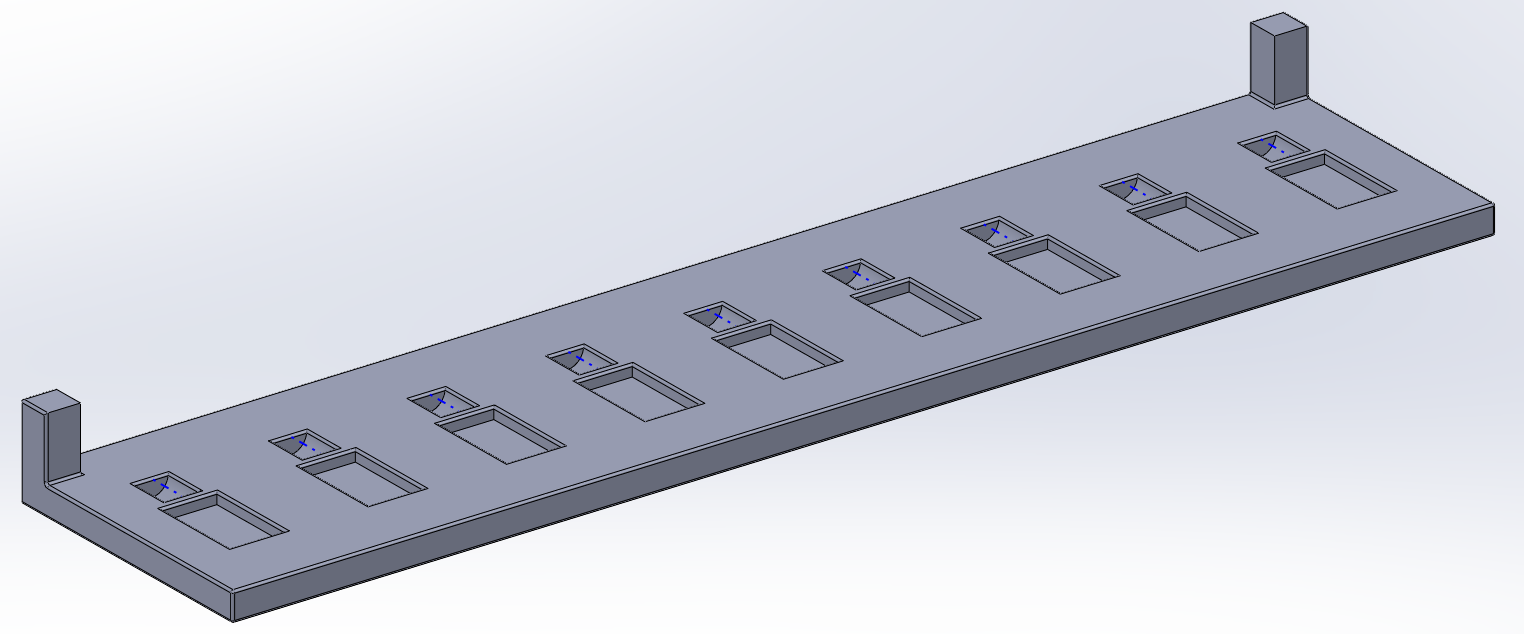 The limit switch holder was another crucial part. The kick from the solenoids once energized is huge so the block had to be able to stay stable as well as lock the switches so they press insted of being moved back by the solenoids. The switch holder is shown in Figure 6 below:
