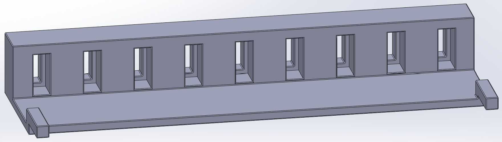 The solenoid block has a square opening to hold the solenoid module. Behind the square holes, there is circular holes that are used create a good clearance for the solenoid spring heads and for them to slide without scraping or locking. The relay block is shown in Figure 3 below: